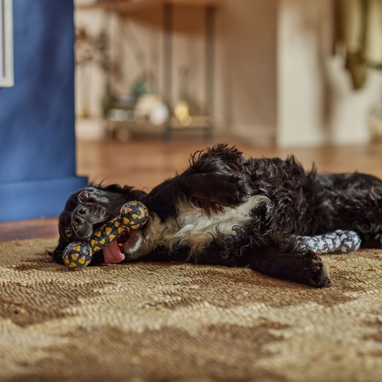 Some toys go squeak in the night…these toys go squeak all the time! These classic ghost and candy corn-patterned toys keep your furball in the spooky spirit year round. The bone-shaped design is made from quality thermoplastic rubber for a squishy bite and erratic bounce that keeps every game of fetch and catch fresh and fun! They’re made with built-in squeakers, too, so it’s great for ghouly games and squeaky, solo fun your dog will adore! Plus, the colors and pattern add a bit of much-needed Halloween color to your dog’s toy collection. Frisco by Chewy has you covered with all the essentials for a happy pet, from poop bags to litter, apparel, toys, beds, dinnerware, leashes and collars and lots more.