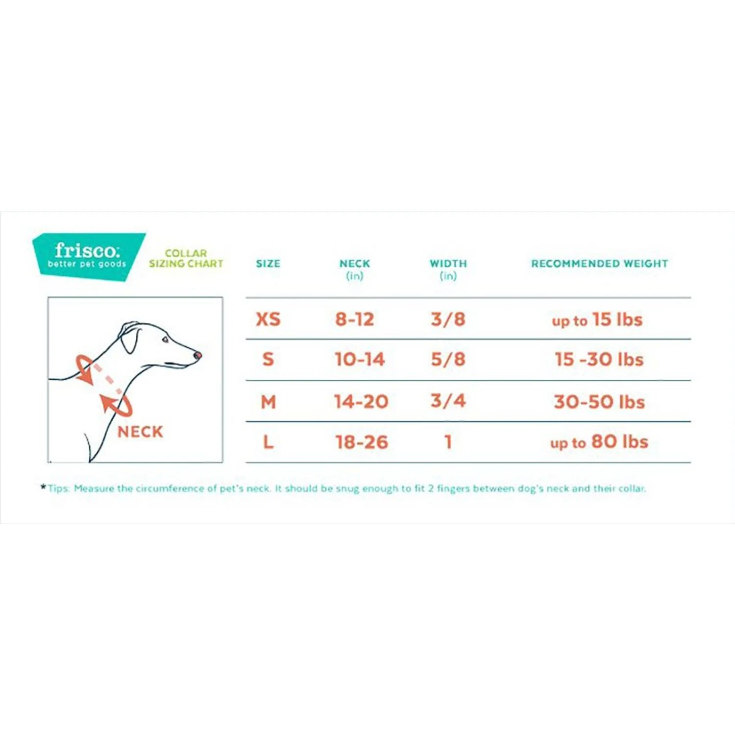 Frisco Solid Nylon Dog Collar, Black, Medium: 14 to 20-in neck, 3/4-in wide — Remember to measure your pet for the paw-fect fit. The Frisco Solid Nylon Dog Collar is a classic yet stylish collar that comes in a variety of colors and sizes so you can find just the right one for your dog. Designed for everyday wear, this collar prepares your pup for adventures outdoors and provides comfort and security during your daily walks.