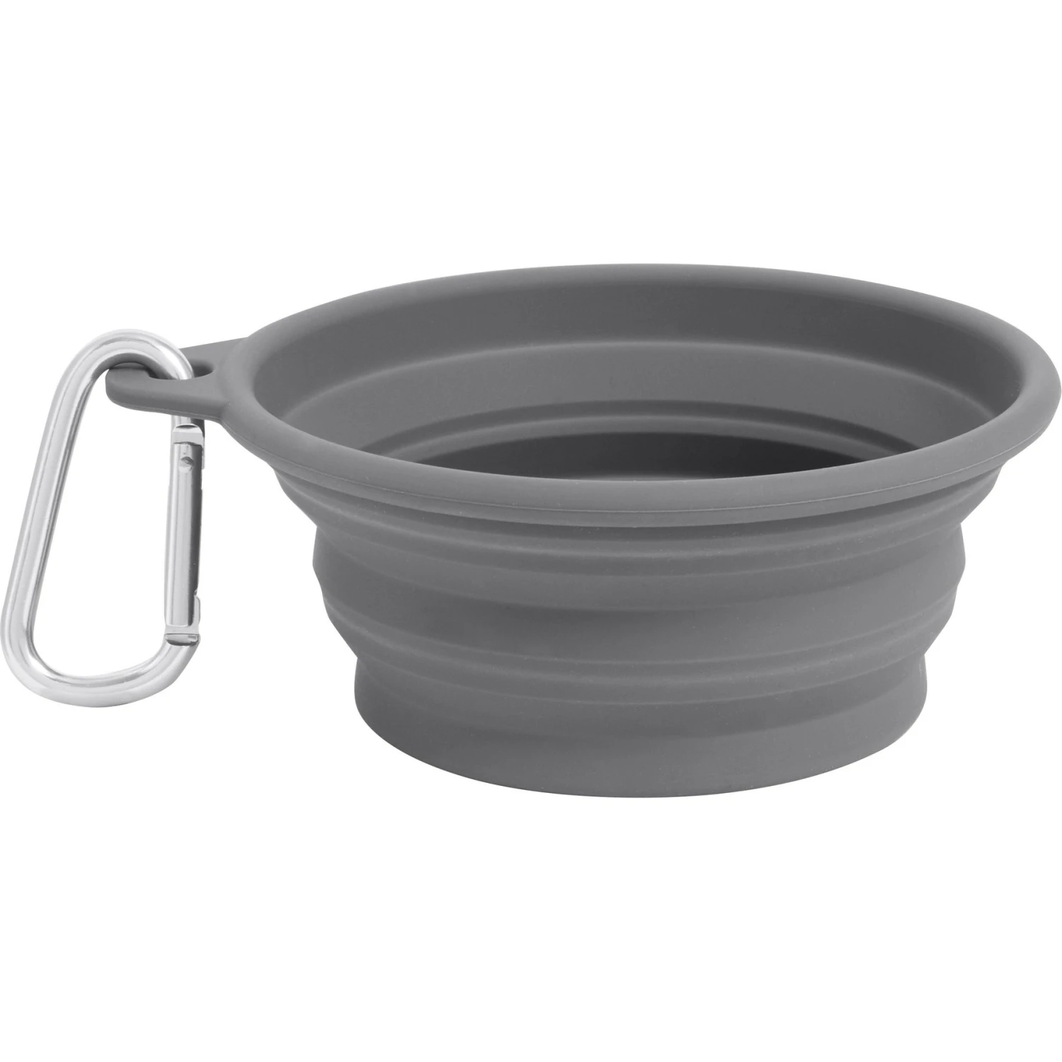 Frisco Silicone Collapsible Travel Bowl with Carabiner, Gray, 1.5 Cups — Feed your pet meals on the go with the Frisco Silicone Collapsible Travel Bowl. These silicone bowls fold flat so you can easily store them in your bag or car when you’re off on great adventures with your fur friend.