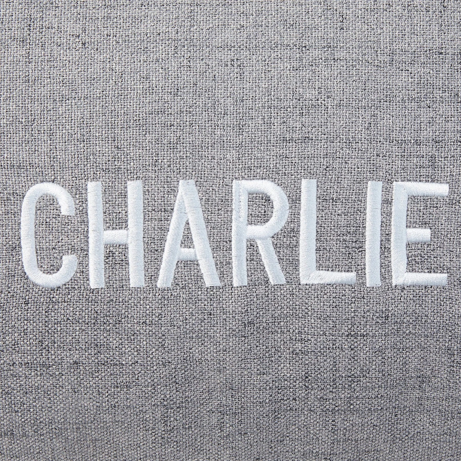 Customize a nap spot just for your dog with the Frisco Personalized Knife Edge Bed! This special sleep spot is personalizable with up to 10 embroidered characters in your choice of white or light gray thread, and flair script or block caps font. This bed literally has their name on it! It’s got a soft, microfiber cover in a dark gray with lots of lofted polyfill inside, so it’s perfectly comfortable for your bestie and it looks great in your home. Plus, there’s no need to worry if it gets a little dirty—just unzip the YKK zipper and give the machine washable cover a spin to keep it clean, comfortable and inviting, nap after nap.