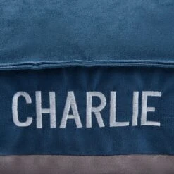 Make naptime personal for your dog with the Frisco Personalized Navy Bolstered Bed! This single-side, back bolster-style bed features a soft, microfiber cover, a supportive bolster with a navy-checkered pattern and lots of lofted polyfill inside. It’s customizable with up to 10 embroidered characters in your choice of white or light gray thread, and flair script or block caps font. It literally has your pet’s name on it! Plus, there’s no need to worry if it gets a little dirty—just unzip the YKK zipper and give the machine washable cover a spin to keep it clean, comfortable and inviting, nap after nap.