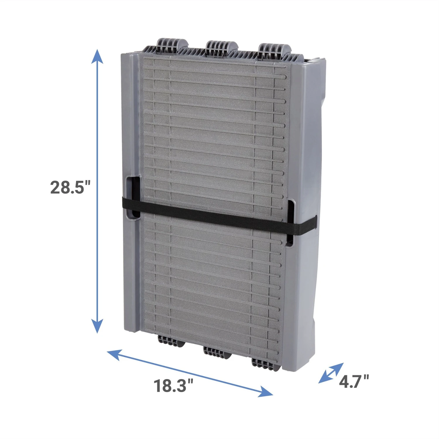 - Sand-blasted ramp surface improves traction, while the polypropylene fiber security strap improves stability.